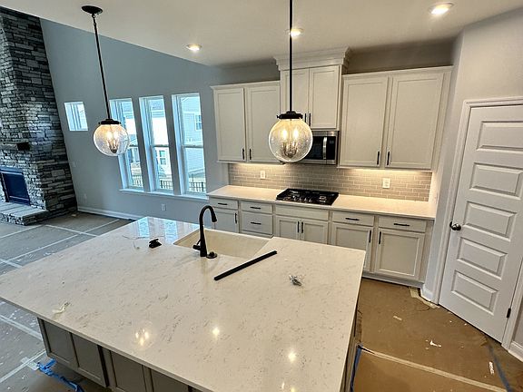 ~ 5.99% (6.042% APR) with use of First Equity Mortgage! ~ Less than 30 miles from Broadway! The Everly! Beautiful 3 car garage on a PRIVATE homesite. Custom designer touches throughout this 5 bedroom and 4 FULL bath home! The dramatic stacked stone fireplace greets you in the family room and highlights the HUGE 20 foot vaulted ceiling. Chef's kitchen featuring double ovens, gas cooktop, and walk in pantry, perfect for all your family gatherings! Primary and Guest Suite are located on main level. Kichler lighting and Moen plumbing fixtures throughout! 3 Bedrooms and 2 baths located upstairs with both a media room AND game room. Wood shelving throughout bedrooms and closets. Oversized carriage garage with pedestrian door to the backyard. Enjoy the covered porch or head across the street for a round of golf at Five Oaks. Convenient to interstate, 109, airport, and downtown.
