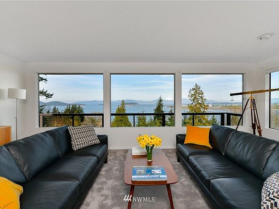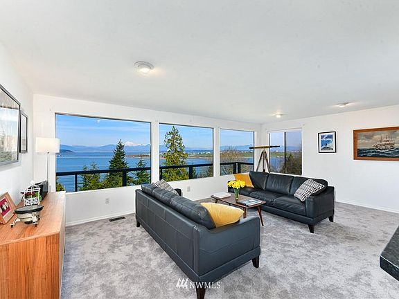 Spectacular island, mountain and water views from this amazing three level home! Decks from your main level dining room and your upper master bedroom! Open concept living/dining and kitchen, you can cook with a view! Love the backsplash, counters and stainless steel appliances in the the kitchen. Large master bedroom on the upper level has plenty of space for a work area or reading nook. Imagine yoga on your master balcony as the sun rises. Lower level adds additional areas for fitness room and hang out rec room! Guaranteed this home won't last long! Make it yours today!