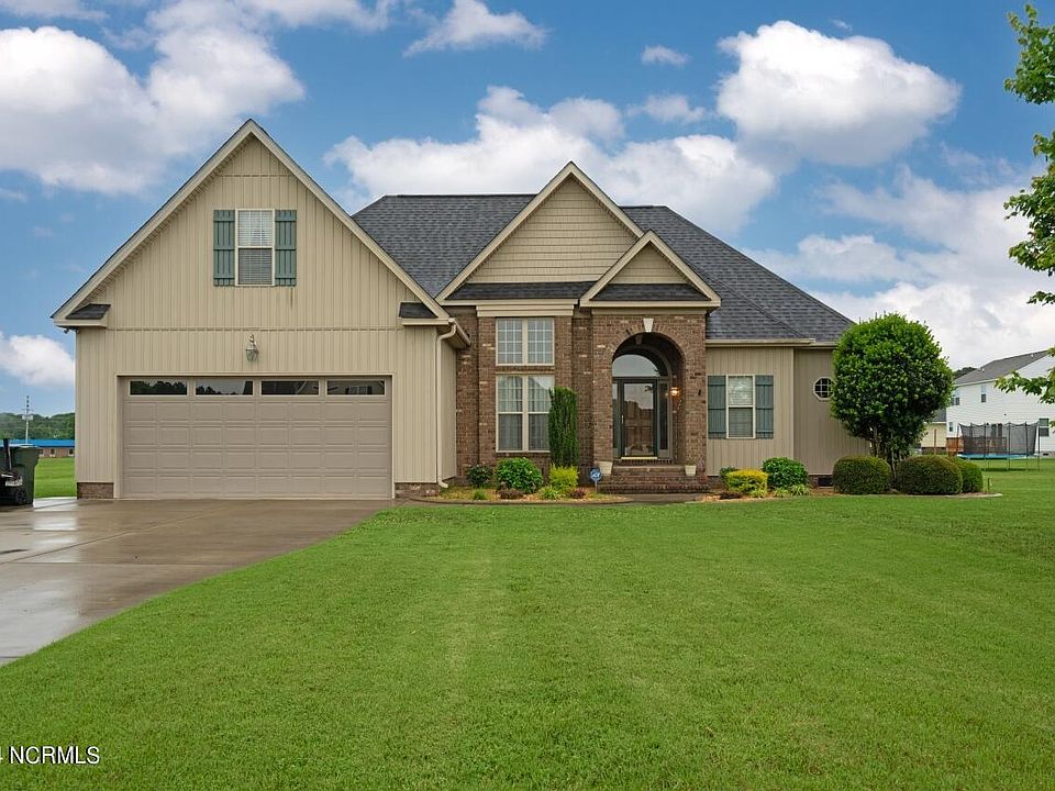 Well-kept home with many updates. New flooring in 2019, new HVAC in 2021, new roof in 2023, new range and refrigerator in 2023, new upstairs mini-split system in 2024, new porch screens in 2023. Great Room with vaulted ceilings and gas log fireplace (fire in pictures is virtual), Formal Dining Room and Eat-in Kitchen with granite counters, tile backsplash, and pantry, steps to Screened Porch overlooking back yard and storage shed. Master Suite with walk-in closet, separate water closet, and walk-in shower. 2 Guest Rooms down share a Full Bath in Hall. Bonus Room upstairs with walk-in attic access. 2 car attached garage.
