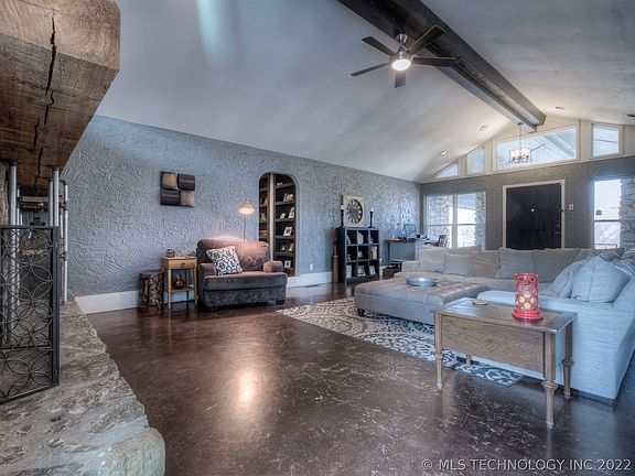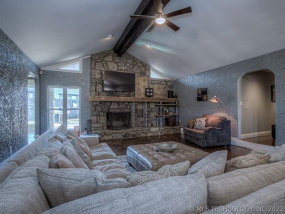 Stunning South Tulsa home up on a hill on a lrg wooded lot. Beautifully updated kitchen w/wood tile floors, new appliances, counters. Lg master suite w/enclosed outdoor patio. 3 bed dwn & 1 up perfect in-law/guest suite. All bedrooms have bathroom access.