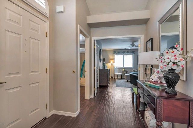 Located in the gated 55+community of Verde Groves this HERITAGE floor plan has an extended garage. Gorgeous 2 bdrm 2 bath with over $51,000 in remodeling done since 2014... it's model perfect! This move in ready home features not only the beautiful decorator touches of interior paint, granite counters, tiled backsplash, new kitchen & laundry appliances, tile wood plank flooring, light fixtures but tons of system items like bringing gas into kitchen for new Samsung gas range, new plumbing supply lines, new Lenox AC & furnace, gas water heater, 7 new dual pane windows & insulated garage door panels. Too many upgrades to mention so check out list under DOC tab. N/S exposure on large community green belt. SEE SUPPLEMENT FOR MORE INFO
