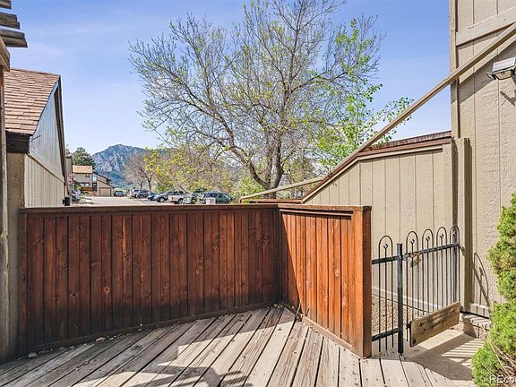 This unique townhouse community allows for low maintenance living in the heart of Boulder located across the street from Fairview High School. Steps away from open space and near hiking trails. This property needs some cosmetic TLC to make it shine again. A short drive or bike ride away from the shops at Table Mesa, restaurants, grocery stores and more. The cozy Family Room offers a wood-burning fireplace. Relax or entertain on the back deck or enjoy the front deck area while taking in the incredible views of the flatirons. The unfinished garden level basement has a stubbed out bathroom, bedroom that just needs flooring added, storage area and laundry space. Easy access to public transportation, Harlow Platts Community Park, South Boulder Rec Center, Fairview High School and Southern Hills Middle School.