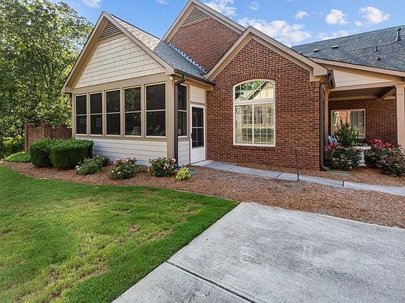 Fabulous open concept floorplan in sought-after Brookhaven at Lanier, a Gated 55+ community! This gorgeous 4 sides brick home has everything you need all on one level! 3 spacious bedrooms, PLUS a separate den with french doors (could also be a formal dining room), PLUS an office with custom built in desk and cabinets, PLUS a huge family room with fireplace and built in cabinets, PLUS a 4 season sunroom with glass windows and screens and outdoor upgraded outdoor grilling patio with view of the woods! Large kitchen with eat in breakfast area, granite counters and tons of cabinets, large pantry and walk in laundry. Gorgeous hardwoods in living spaces and tile in sunroom and baths. Oversized two-car garage provides ample storage plus large attic storage! Lovely community with pool and clubhouse! All landscaping and exterior maintenance included in low HOA fees. Easy access to shopping, restaurants, hospital and doctors buildings, GA-400 and more! Call today!