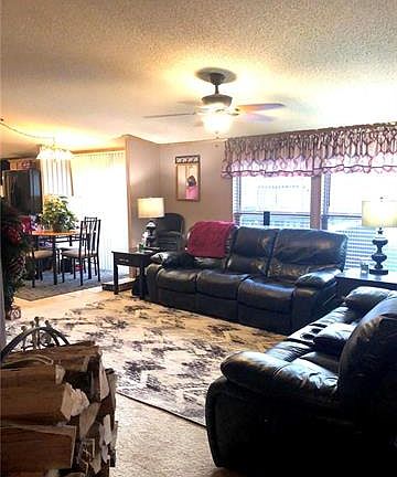 Beautifully kept, large, double wide mobile home with a lovely, homey feel. Located on a nice corner lot. 2 large decks; front deck just built in Oct. 2020 w/ electronic, retractable Awning. Wood burning fireplace in Living room. Huge eat-in kitchen w/ center island & gas stove. Propane heat - rented tanks. Really a must see!
