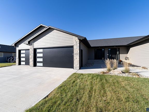 This new build twinhome provides the ease of day to day living, without sacrificing space and style! Located in the growing northwest section of Sioux Falls, access to interstate and amenities is made easy! This ranch floorplan provides 2 bedrooms on the main level, including a primary suite with a dedicated bathroom featuring double sink/vanities & walk-in closet. You get functionality galore with main floor laundry & drop zone space. The main living space is open, and bright with modern colors and finishes throughout! The kitchen includes quartz countertops with a breakfast bar, tile backsplash, stainless appliances, & pantry space! A generous deck off the slider is the perfect way to take in fresh air! Step downstairs into another family room an electric fireplace for gatherings, 2 additional bedrooms, and a full bath. The 3 stall garage provides plenty of added storage space for toys/vehicles.