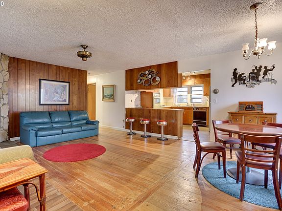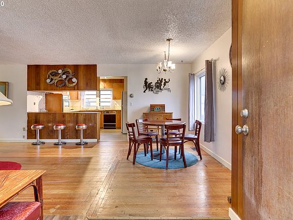 Mid-century charmer w/ daylight basement & huge shop. Rustic, wide-plank oak flooring, open kitchen, w/ bar & period details. Once a church, this home boasts a massive basement w/ a separate entrance - perfect for income suite/ADU/mother-in-law quarters. Huge two-bay shop & double-wide, deep driveway is perfect for hobbies or side business. With a removable fence, there is enough parking for 20 cars! Centrally located near public transit, shopping, restaurants, the airport, & freeway. [Home Energy Score = 2. HES Report at https://rpt.greenbuildingregistry.com/hes/OR10188049]