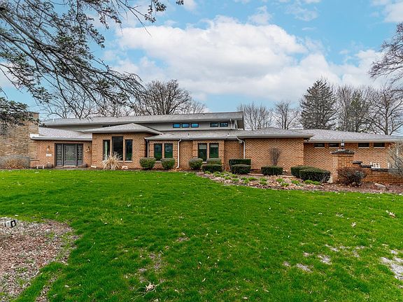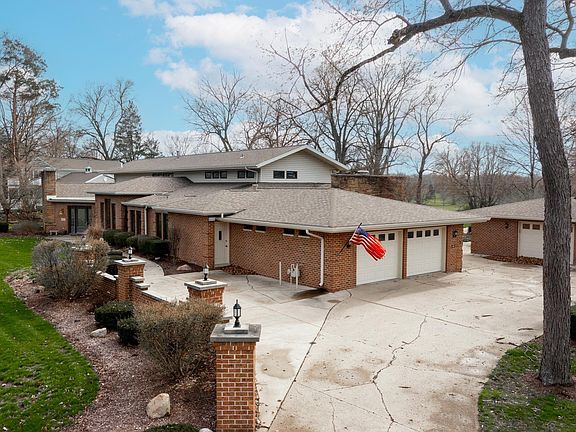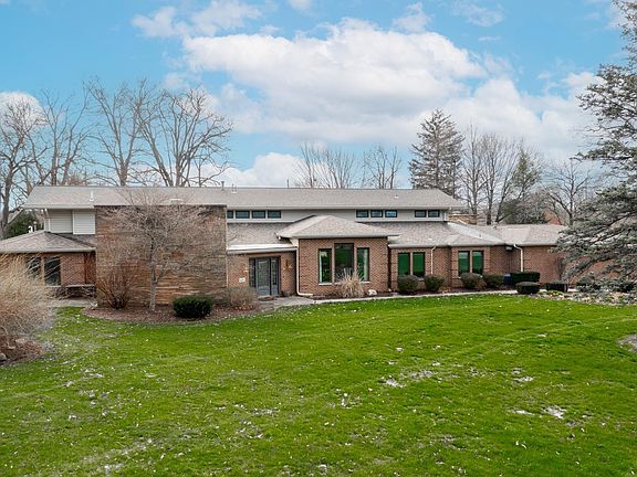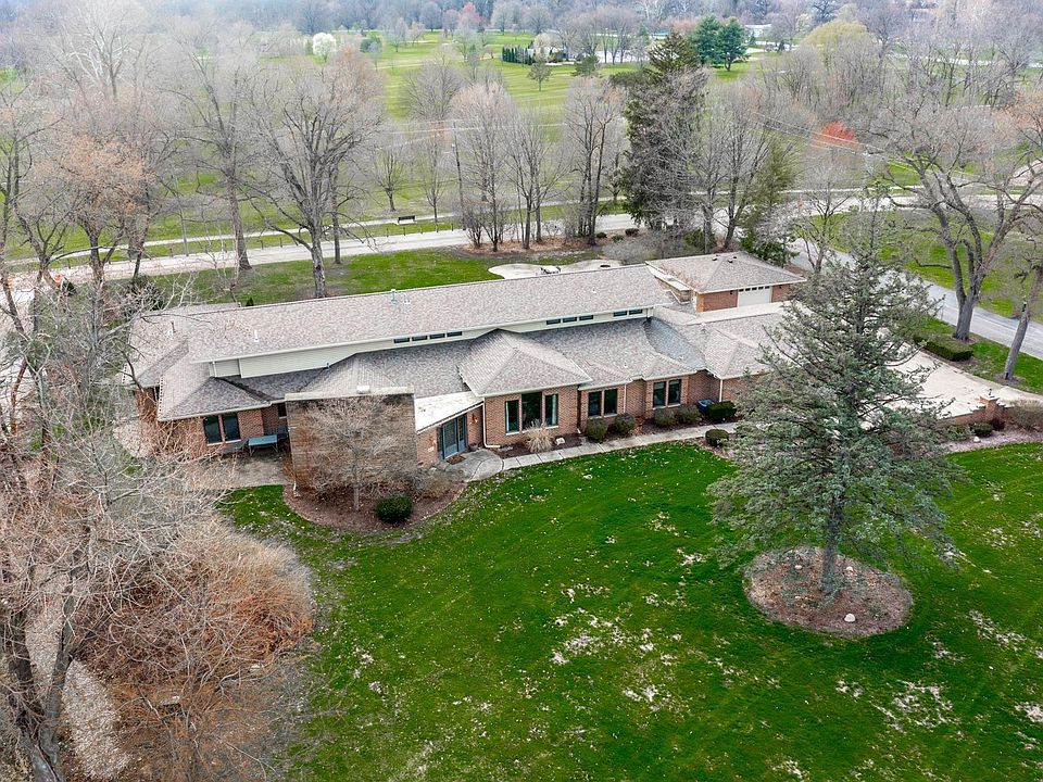 Located on prestigious Old Mill Road, this sprawling five-bedroom, six full and one half bath sprawling ranch has everything you are looking for in a home. With Foster Park golf course behind you, 4 miles of riverbank, a 2-mile trail, and a short walk to the 07 Pub, The Clyde Theatre, and Crescendo Coffee. With 1.18 acres of lush grass, beautiful landscaping & mature trees, this grand estate feels even larger and more open due to the adjacent park. Elegant brick walls curving around the front provide a strong architectural element, while the noteworthy exterior lighting makes a statement at night. The detached, all brick garage has a large workshop area and a lot of space.The leaded glass front door opens to an impressive foyer with oversized slate tiles and a large open-concept area defined by stacked stone architectural elements. The living room has a stone fireplace & a private door to the side patio. The dining room, with stunning wall sconces and lighted tray ceilings, has excellent windows overlooking Old Mill Road. The kitchen has a spacious breakfast area, a great deal of cabinetry, Corian countertops, an island, a peninsula bar & toe lights throughout. A pass-through from the kitchen goes right to the bar within the family room. An entire wall of windows overlooks Foster Park while the stacked stone fireplace. Enjoy the main floor game room, large multipurpose room in the back of the house, and basement entertainment room. Welcome Home!