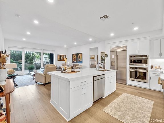Located at The Lexington community of Central Park West, this luxurious first floor condo features 2 bedroom, a den which could be a perfect space for an office, and 3 full baths. The great room opens to the spacious private patio which leads to the open space area of the community with sitting areas, fire-pits, BBQ area, patio cover with TV for entertainment. The Kitchen features top of the line GE Monogram smart appliances with built-in refrigerator, dishwasher, microwave, 5-burner countertop gas range, convection oven, hood, shaker cabinets with Quartz countertops under-cabinet lighting and an oversized island. The generously sized Master and Guest bedrooms feature walk-in closets, upgraded plush carpet, private en suite bathrooms with double-sink and spacious shower rooms. a spa-like bathtub in Master bath. The powder room is a full bathroom with a bathtub. This condo offers the convenience of in-unit laundry with washer and dryer. The two assigned side by side parking spots are located on the lower level parking with easy access to the elevator. Onsite amenities including a fitness center, dog park, lounge areas, barbecues, swimming pool and playground. Located across from Park Place Irvine, easy access to LA Fitness, high end restaurants, shopping, 405 fwy, South Coast Plaza, Fashion Island, John Wayne Airport, beaches ....