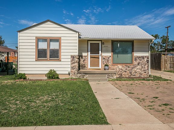 Getting NEW ROOF, GARAGE DOOR, GUTTERS, SCREENS in July. SHOP and one car GARAGE come with this adorable 3 bedroom 2 bath home in the Gables neighborhood. Kitchen includes stained wood cabinetry, electric range, dishwasher and microwave. Kitchen/dining area combined. Isolated master bedroom. Central heat and air. Wood flooring under majority of carpeted areas. Sewer line from house to alley installed 2015. All electric home. Shop measures 27' x 15' and is constructed with cinder blocks. Shop has electricity. Fenced yard.