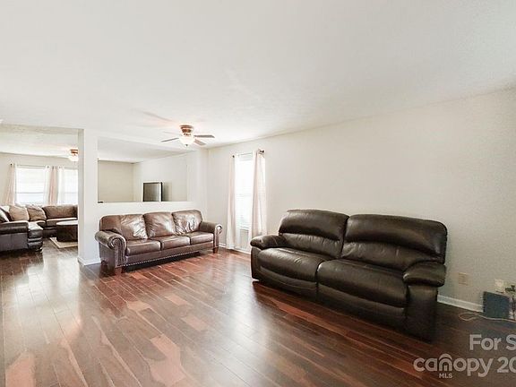 Interior freshly painted with a neutral color. Open floor plan on main level. Formal Living Room is open to the Family Room. Either room could be used as a Formal Dining Room. Family Room is open to large Kitchen with big pantry. Sellers willing to leave kitchen island if buyer wants it as it is not attached. Powder room has upgraded vanity. Primary bedroom has huge walk-in closet. Two other bedrooms also have walk-in closets. One closet is being used as a small office. Nice flat lot with privacy fence. Separate dog area off of screen porch. Home is located at the end of the street near the cul-de-sac. Roof replaced in 2019. Water heater replaced 2022. HVAC serviced in 2022 with no issues. Desirable Clover Schools. Great Clover location.