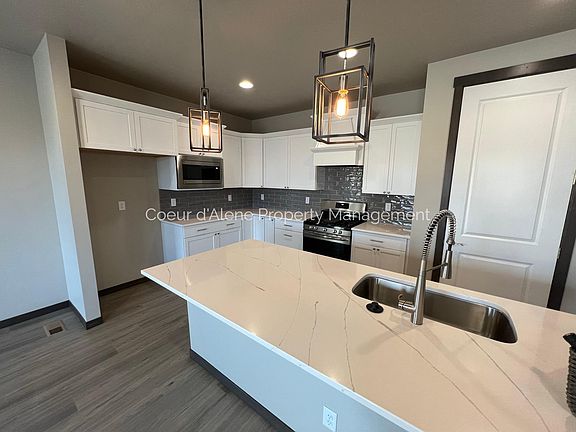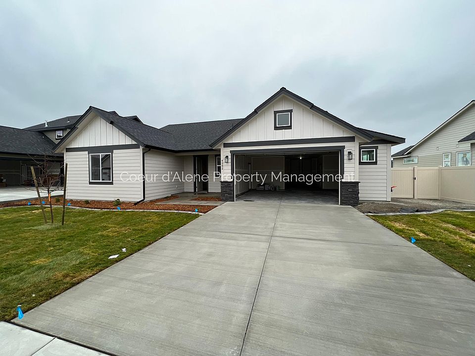 New 3 bed, 2 bath home. Located in The Trails of Coeur D' Alene. 3 car garage, fully fenced and landscaped yard. Stainless steel appliances, gas fireplace, A/C, washer/dryer included, Plank flooring throughout w/ carpet in the bedrooms. Large walk in closet in the master. Tenant responsible for ALL utility payments. Owner provides yard care. NO PETS. NON-SMOKING.