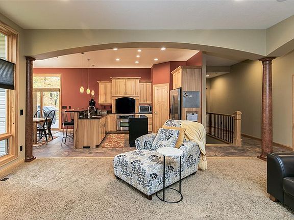 The most perfect 3.36 acre lot with 2.36 being timber. An abundance of wildlife & beautiful views. The main floor has 10 ceilings with a split master floor plan and master suite with a massive walk-in closet, led lighted tray ceiling, large en suite with soaking tub & custom tile shower. So many beautiful details in this home, custom hickory cabinets, granite countertops, walk-in pantry, under/above cabinet lighting & large windows. Entertain in the walkout lower level family room, custom bar, polished stained concrete floors & built-in media center. With over 3,200 sq. ft total makes it perfect for a large or growing family. There are dual water heaters, built-in sound system, gas powered generator & more. 3 Car heated garage, south facing driveway & a bonus accessory garage for lawn equipment. At the time of building the backyard was graded for a future pool, who wouldnt love that possibility! Immediate possession too!