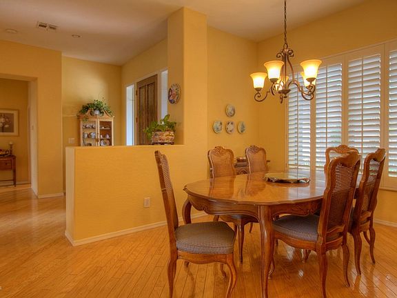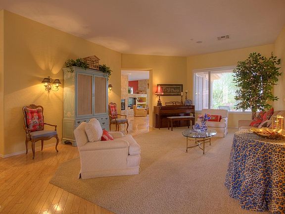 A home that expresses itself quietly but impressively with rich details and elegant simplicity. Great curb appeal with a grassy front yard. The interior is a delight to the senses with the impressive custom built in stone media center in the family room, upgraded 'wood' flooring, upgraded carpets, custom drapery, plantation shutters, hard maple raised cabinets, tile baseboards in master bath, custom Calif. closets with locked jewelry drawer, tie & belt racks, cedar cabinets and laundry hamper. Upgraded appliances, lights under kitchen cabinets, security system, stereo speaker package, upgraded thermostat, soft water & R/O system, low E windows, raised seer A/C. Backyard features a large custom water feature and pretty views. A refuge of refinement. Come see.