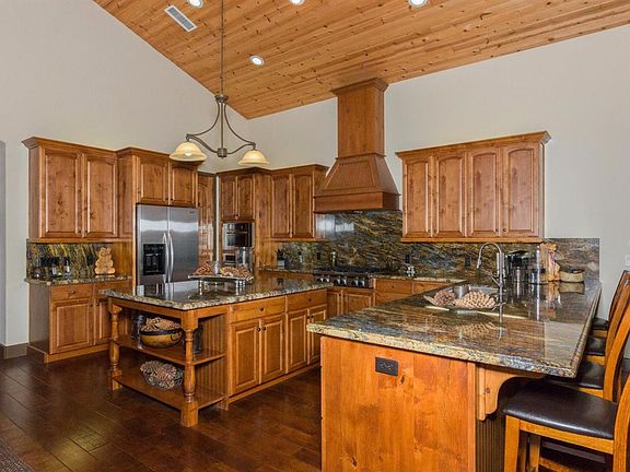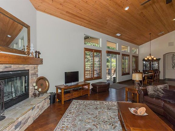 This deluxe mountain home was built by Image Custom Homes, the leading builder of prestigious custom luxury homes in the San Joaquin Valley and Shaver Lake. Located in the upscale Bretz Mountain Village subdivision, this home has a much sought after reverse floor plan. Large and spacious great room features vaulted wood ceilings, a cozy gas fireplace, rich hardwood floors and ample windows to allow for natural lighting. The kitchen is a focal point of this great room, open to the dining and living room area, you will find rich granite countertops/back splash, knotty alder cabinetry, stainless steel appliances, an ample pantry and large center island. The master suite is off of the great room, which features a corner gas fireplace, jetted tub and access to the wrap around deck. Three guestrooms and the laundry room are located on the opposite side from the master bedroom, giving you and your guests plenty of privacy. This beautiful home is a must see!