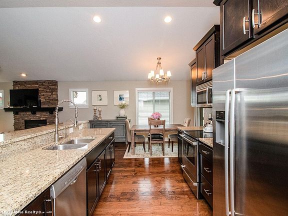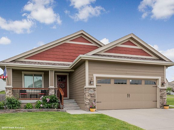 Over 2,200 sq. ft. finished in this ranch is sure to amaze. This 5 star+ energy rated home boasts cement siding, stone exterior, fully fenced backyard, covered front and back porch ceiling fan. This open floor plan is full of amenities, including hardwood and porcelain floors, vltd ceilings, stone fireplace and island, beautiful granite and cabinetry, stainless appliances, 1st flr mudroom, laundry and pantry. 2 bdrms on main featuring master with his/her closets, dual sinks, & custom tiled shower. Lower level has 9 ft ceilings and 2 additional bdrms, great room and full Jack & Jill bath along with extensive storage. Extras including blown cellulose insulation, brushed nickel fixtures, and transom windows. 2 car attached garage with extra poured parking pad. Absolutely move in ready on a cul-de-sac in hot Urbandale neighborhood. Waukee schools.