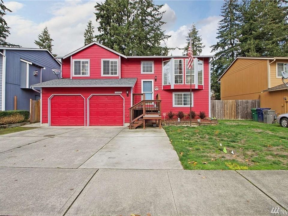 Quiet cul-de-sac w/easy access to I-5! Cozy living room w/gas fireplace & new carpet. Kitchen, w/all stainless appliances & dining room perfect for entertaining. French doors lead to fabulous X- large entertaining deck w/durable decking material & partially covd. Master w/adjoining bath & 2 additional bedrooms & guest bath complete upper level. Downstairs, family room w/french doors leading to patio & yard. Newer roof! SELLER WILL CREDIT BUYER $2,000.00 AT CLOSING TO GO TOWARDS NEW EXT PAINT.