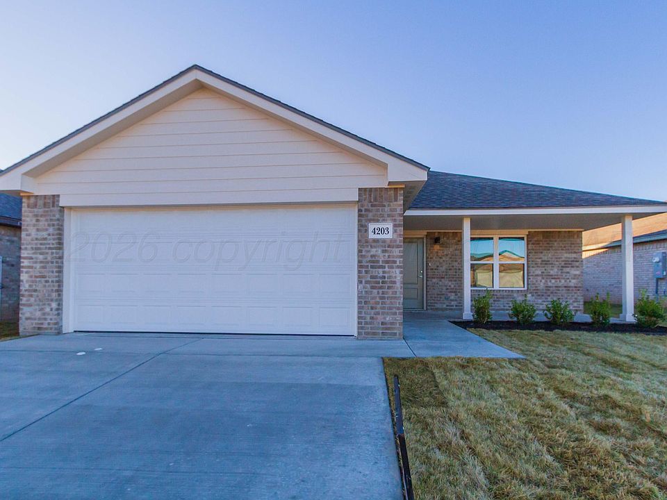 Eastland Homes' new construction is nestled in the charming neighborhood of Beacon Pointe within the Canyon Independent School District. This stylish home offers 3 bedrooms, 2 bathrooms, and a 2-car garage. The kitchen, featuring granite countertops. The open floor plan maximizes space and comfort, creating a welcoming living environment. With a sprinkler system and sod in the front and backyard, this home also boasts excellent curb appeal in this newer subdivision.