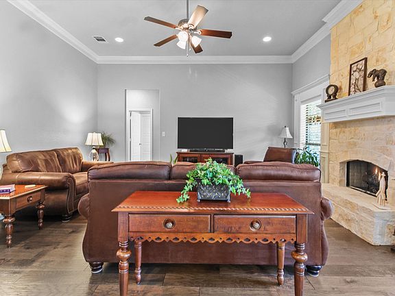 Like-new home within minutes of UT Tyler! Beautiful finishes and tall ceilings throughout the home. The living space has a stone fireplace and detailed casing around the window and door for added charm. Granite countertops, stainless appliances, pendant lighting, breakfast bar, pantry, and subway tile backsplash can all be found in the kitchen. A mudroom bench with hooks and cubbies gives you a landing spot for jackets, bags, and backpacks. Primary bedroom is split and has a lovely en suite bathroom and walk-in closet. Three guest rooms share a Jack-N-Jill bathroom that was two separate vanity areas. Covered back porch and fenced, private back yard.