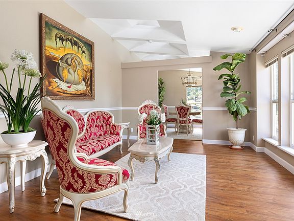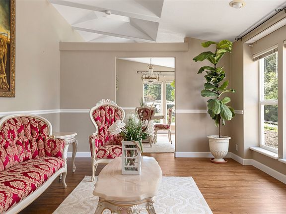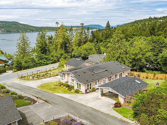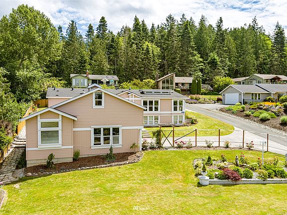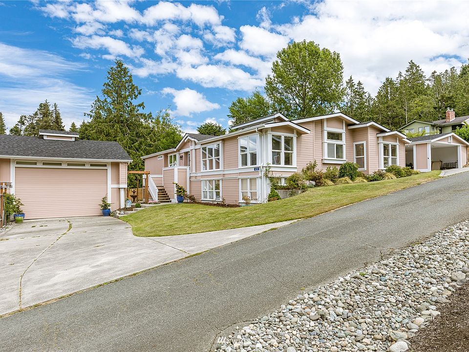 Amazing Spacious home on a large lot with detached versatile 1350 sq ft shop along with detached 2 car garage! This home has it all w/ 3 bedrooms, 2.5 bath, formal living room, dining room, and office. Well engineered triple wide w/ lots of windows and skylights allowing for an array of natural light throughout. Vaulted ceilings , large family room, upgraded kitchen, breakfast nook, walk in pantry, and island is perfect for hosting dinner parties and more. Plus new flooring throughout. Primary bedroom and spacious bathroom w/ soaker tub, stand up shower and walk in closet. Fenced landscaped yard, deck, all this AND a peek a boo view of the water! Come take a look today and make this your forever home in a quiet neighborhood.