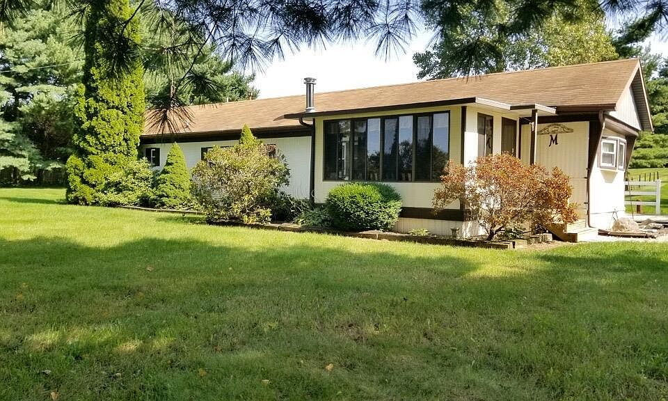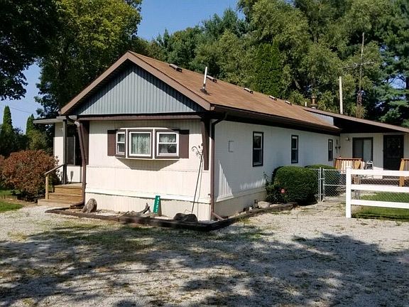 Situated in a quiet rural setting on 3.724 Acres with 2 out buildings, you will find a mobile home with a new shingled roof cover with an attached enclosed porch, kitchen with all appliances, storage room, 2 bedrooms, one bath and laundry area in hallway and an attached and heated family room on the back side. Pole barn with electricity and a second barn without electric. Gorgeous pasture area ,.The setting is peaceful. There is a variance in place now but when property sales variance is removed as it goes with the owner not the land. In order for the mobile home to remain with the property a buyer must apply for a new variance. Length of time for the variance can varybased on use.. For questions regarding variances call the Building Commissioner.office.