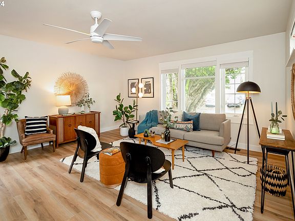 Fabulous one level living tucked away in the charming Woodstock neighborhood! Set up from the street, this inviting 2 bedroom 2 bath ranch has updates throughout & is ready for its new owners. Living / dining room has a spacious open floor plan that is perfect for entertaining, with large picture windows that overlook the garden patio and raised beds. Updated kitchen, bathrooms, flooring, new appliances and washer & dryer, with fresh paint on the interior and exterior - makes this home move in ready! Large bedrooms with ample closet space, and primary bedroom with ensuite bathroom, each with their own access to lovely backyard deck. Low maintenance fenced yard with space to garden in the front and back, with south facing exposure - perfect for urban gardening. Newer roof, electrical panel, hot water heater, gutters and more. 98 bike score, 70 walk score, blocks away from Keeper coffee. Short walk to Woodstock Park and downtown Woodstock restaurants and shops. This home and neighborhood have so much to offer, don't miss it before its gone! [Home Energy Score = 4. HES Report at https://rpt.greenbuildingregistry.com/hes/OR10194609]