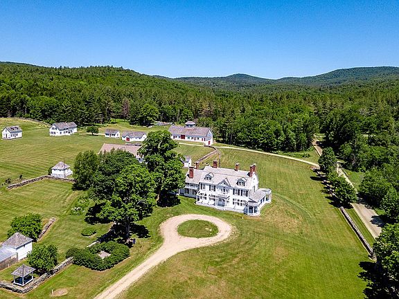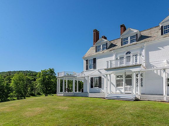 Brook Farm: a grand summer mansion and vineyard, coolly reinvented for the 21st century. Built between 1894 - 1898, the Bates Mansion, is an elegant Georgian Revival on 43+ acres defined by four-foot stone walls, perennial gardens, orchard, berry bushes, ponds and a four-acre vineyard and winery. The 8,082-square-foot mansion is light and sophisticated, with an engaging recent renovation. Spacious porches wrap around three sides and overlook the vineyards and mountains in the distance. The first floor is centered around the great room with its large fireplace, half-turn grand staircase and soaring elliptical balconied opening. The dining room is a Gilded Age confection brilliant in candlelight. The balance of the first floor offers a mix of sophisticated intimate spaces and a glorious open modern kitchen. Four of the eight bedrooms have fireplaces and three have private bathrooms. On the third floor, the former ballroom is now the ultimate playroom. With supporting buildings ranging from a variety of barns to a beautifully renovated farmhouse, this model gentleman's farm offers graceful living and quiet beauty. Located just 6.4 miles from Okemo Mountain Resort.