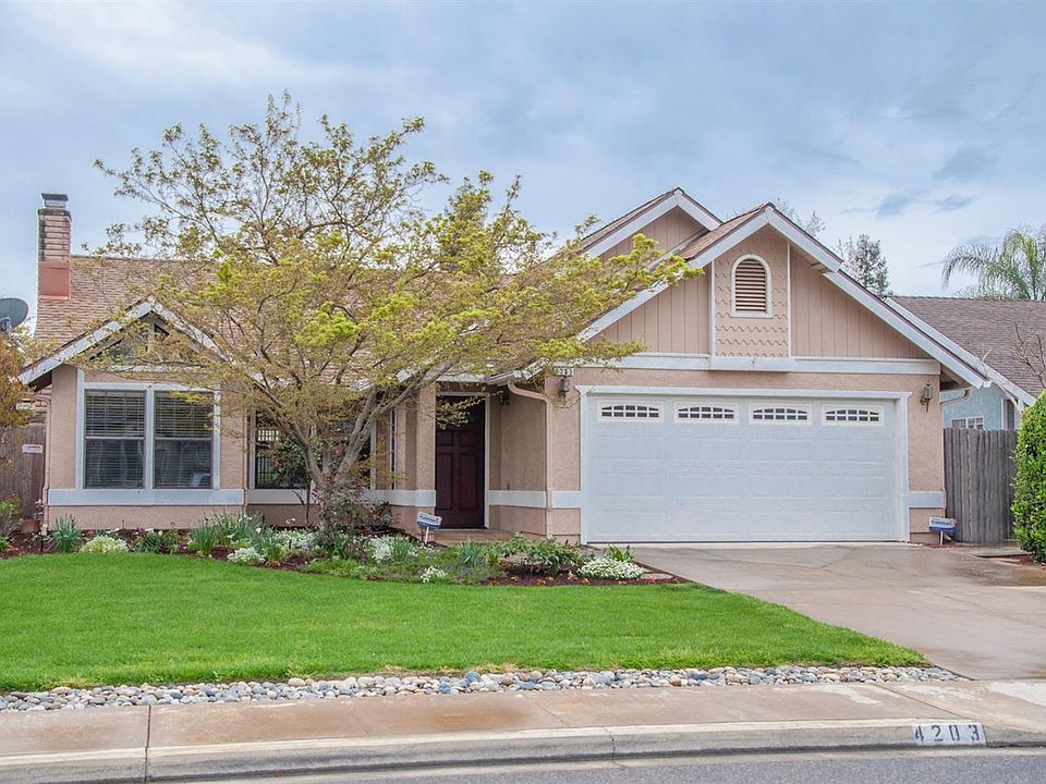 This move-in ready home in SW Visalia is a charmer! Conveniently located near schools and shopping, this house is neat-as-a-pin and ready for a new family. Fresh paint throughout! Open great room with brick fireplace and mantel. Formal dining room or breakfast nook with sliding glass door to covered patio. Kitchen with loads of storage. Hall built-in storage. Large master suite with huge walk in closet and bathroom with his and hers vanities. Spacious additional bedrooms. Colorful front and backyard landscape. Freshly painted deck in backyard. Two car attached garage with painted floor. This fabulous property will not last long, call to arrange your private showing today!
