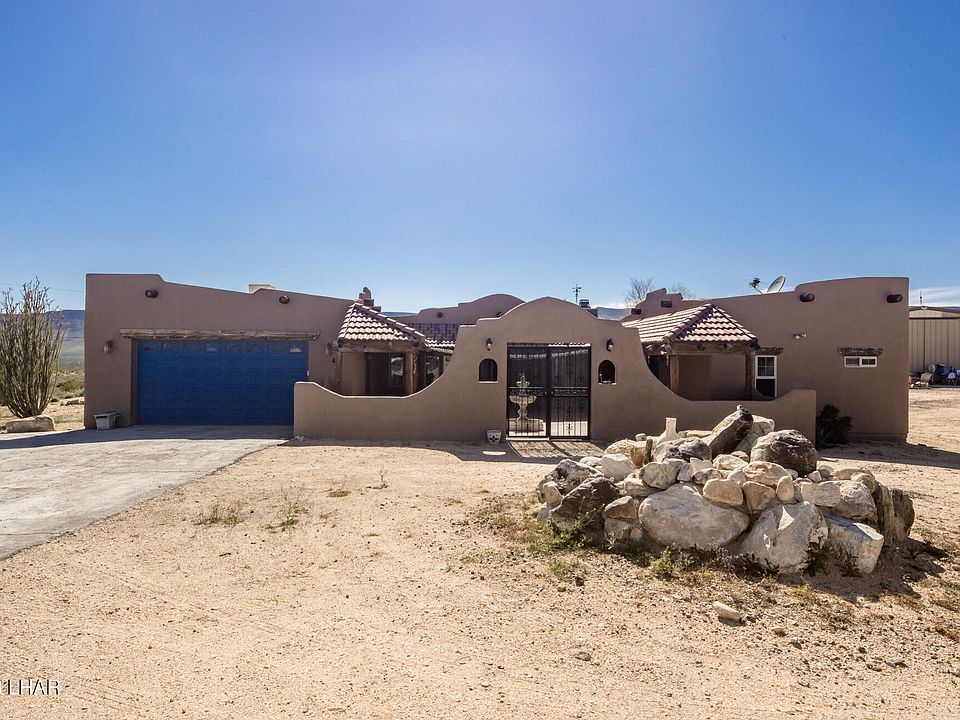 Rural southwestern living with all the creature comforts! Situated on nearly 5 acres, this 1835 sq.ft. open floor plan 3 bed 2 bath home has both front and rear partially covered/fully enclosed stucco block wall courtyards and panoramic views of the Hualapai Mountains to the east, and the Warm Springs Wilderness Area to the west. Approx. 20 miles to Kingman, 35 miles to Havasu.
