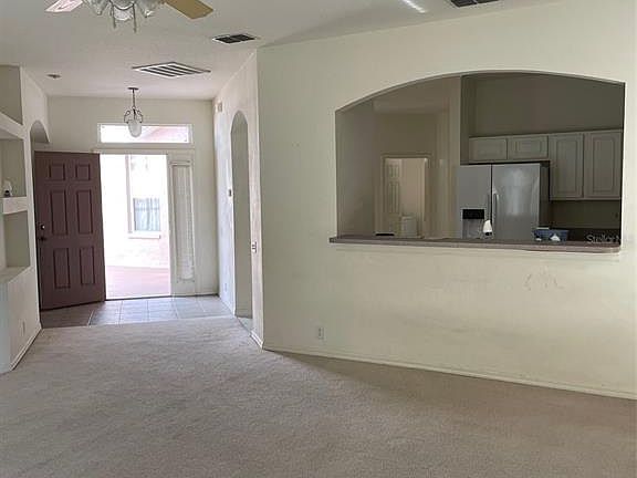 Location, Location! Carillon Lakes, Gated community 24/7 guards, this hard-to-find floor plan offers 3 Bedrooms 3-bathroom, 3rd Bedroom Suite perfect for a Mother-in-law suite with Kitchenette, Living, Bedroom and bathroom, access from the private screened atrium courtyard. Main house has 2 Bedrooms and 2 Bathroom, kitchen with breakfast nook, Living room, master bedroom with walk in closet. Plus guest bedroom with bath. Utility room with washer and dryer just off the oversized garage. New roof 2020, newer outside ac unit for main house. Community amenities include Swimming pool, heated hot tub, clubhouse, a billiard room, multiple kitchens, ball room space, meetings spaces, gym and more, gazebo, tennis, pickle ball, basketball, fishing docs, walking trails, mail building, playground, The HOA also provides each homeowner with basic cable TV / internet service, lawn care included. Conveniently located to Polk Pkwy and I-4 with easy access to Orlando and Tampa within minutes of Lakeland Linder International Airport, close to shopping and restaurants. Price less than market value and the average Sq ft of houses in this community, that sold recently. "SOLD AS IS " All measurements approximate to be verified by buyers and Agent.