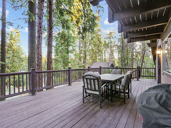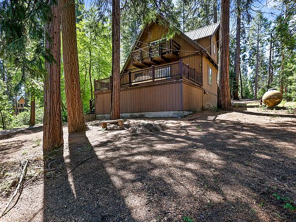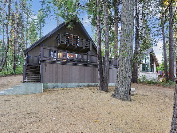Welcome to your cozy mountain retreat in the Sierra Cedars subdivision! This charming two-story, 3-bedroom, 2-bathroom cabin comes fully furnished and is a turnkey vacation rental ready for immediate enjoyment or rental income. Step into the warm and inviting main level, where you'll find a spacious living room with a fireplace, a dedicated dining area, and a well-equipped kitchen with a laundry closet conveniently tucked away. A comfortable bedroom and bathroom complete the main floor. Upstairs, A-frame ceilings add rustic charm to the two additional bedrooms each of which feature a private balcony with peaceful tree views, perfect for your morning coffee or evening stargazing. The second bathroom is nestled between the upper level bedrooms. Enjoy the fresh mountain air from the large deck in the front and back of the home, ideal for relaxing or entertaining. Whether you're looking for a personal escape or an investment property, this cabin is the perfect blend of comfort, convenience, and character. Don't miss this opportunity to own a fully furnished vacation home in the scenic areas of the Sierras!