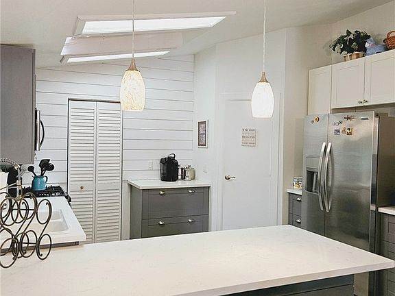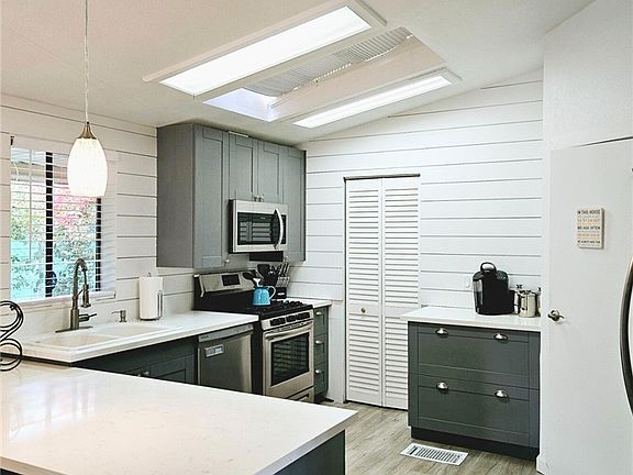 The Kitchen is the heart of the home, boasting new cabinetry, appliances, sleek countertops, and a convenient counter-height dining area. A large pantry and skylight add functionality and charm to this cozy culinary space. Retreat to the master bedroom, where you will find a walk-in closet, a lovely 5-piece bath, and sliding doors that lead to the backyard oasis. Imagine enjoying your morning coffee surrounded by lush greenery and the sweet scent of citrus from the nearby orange and lemon trees.