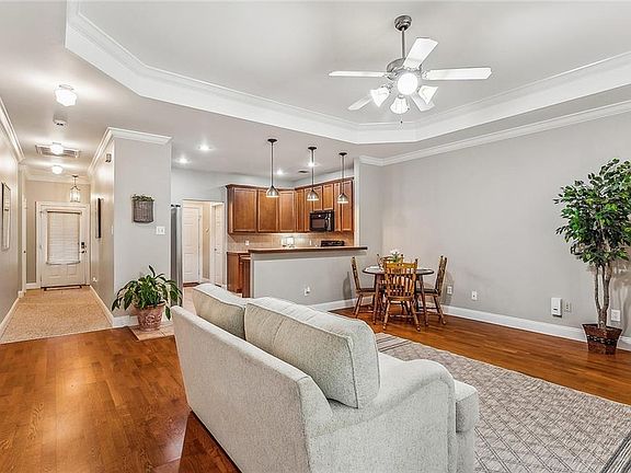 This charming move-in ready townhouse offers a cozy retreat nestled in a tranquil setting. This residence features a blend of comfort and convenience with an inviting atmosphere and modern amenities including a fireplace. The open floor plan creates an ideal area for entertaining or simply relaxing after a long day. The kitchen has oversized cabinets, plenty of counter space and a breakfast bar that creates more than enough room for gatherings. Enjoy the outside tranquility with the addition of a new covered patio, where your morning coffee or evening wind-downs await. Located minutes away from shops, hospital, restaurants, I-12 and I-55. Featuring 2 bedrooms, 2 baths and a private backyard with a wooden fence that backs up to a wooded area. Front lawn service is maintained by the HOA.