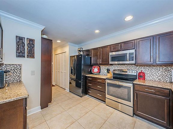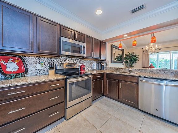 STUNNING - MOVE IN READY - LIKE NEW - TWO STORY TOWNHOME centrally located in the highly sought after MILLPOND ESTATES community! This OPEN AIRY, LIGHT BRIGHT TOWNHOME features 3 bedrooms, 2.5 baths and a 1 car attached garage. The LUSH LANDSCAPING invites you up to the FRONT DOOR and SCREENED IN ENTRANCE. Just inside you are greeted with SOARING VAULTED CEILINGS, RICH WOOD FLOORS, CROWN MOLDING AND A STUNNING STAIRCASE UP TO THE SECOND FLOOR. DOWNSTAIRS you will find the GREAT ROOM with a STONE FINISHED ACCENT WALL, SPACIOUS DINING ROOM and a GOURMET KITCHEN. The CHEF INSPIRED & REMODELED KITCHEN includes CERAMIC TILE FLOORS, GRANITE COUNTERTOPS, CUSTOM ESPRESSO WOOD CABINETS WITH PULL OUTS AND POT DRAWERS to maximize storage, STAINLESS STEEL APPLIANCES, TILE BACKSPLASH, UPGRADED PENDANT LIGHTS OVER THE BREAKFAST BAR, RECESSED LIGHTING with DIMMER SWITCHES, UNDER THE COUNTER LIGHTING, COFFEE BAR and DIRECT ACCESS INTO THE ONE CAR GARAGE. The SPACIOUS DOWNSTAIRS OWNERS SUITE features VOLUME CEILINGS, an ORGANIZED WALK IN CLOSET and PRIVATE REMODELED BATH. UPSTAIRS are the 2 SECONDARY BEDROOMS and one FULL BATH. Additional features of this home includes CROWN MOLDING, a SCREENED, FINISHED INDOOR LANAI plus an OUTDOOR PAVER PATIO surrounded by LUSH LANDSCAPING that creates a TROPICAL PRIVATE OUTDOOR LIVING SPACE, NEWER HOT WATER HEATER (2014), VIVINT SECURITY SYSTEM, NEWER ROOF (2015) with ADDED INSULATION FOR ENERGY EFFICIENCY, NEW WINDOWS, UPGRADED FIXTURES THROUGHOUT, SKYLIGHT in UPSTAIRS BATH, GUTTERS, NEW GARAGE DOOR, INSIDE LAUNDRY CLOSET OFF THE KITCHEN with ADDED STORAGE SHELVES, WASHER AND DRYER INCLUDED and MORE. LOW HOA DUES , NO CDD FEES, HOA includes, the roof replacement, exterior maintenance, exterior painting, trash, COMMUNITY POOL & SPA, CLUBHOUSE with MANY SOCIAL COMMUNITY ACTIVITIES AVAILABLE, SHUFFLEBOARD COURTS, CORN HOLE and more. THIS WON'T LAST, MUST SEE!!!