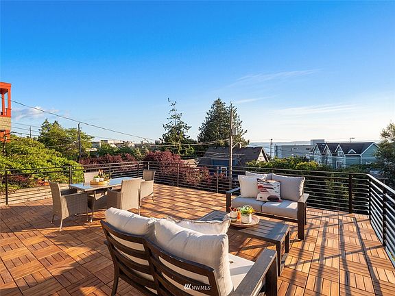ASK ABOUT OUR PREFERRED LENDERS WITH RATES IN THE 5%+ FOR QUALIFIED BUYERS! Welcome to a home that you will love from the moment you step onto the expansive Teak deck and turn west to admire glorious sunsets overlooking Alki Beach, Puget Sound and Olympic Mountain Range. The spacious lvg rm is filled w/natural light that leads into the gourmet kitchen featuring luxury Viking appliances, a waterfall island breakfast bar, spacious, flat panel cabinetry in soft golden hues above qtz countertops & full wall backsplash. The MSTR features a WIC, ensuite w/WI shower w/dual rain head fixtures & double vanity. Custom iron railings guide you to lower-level w/wet bar, bev fridge& floating shelves. Walk to Alki Beach, Alaska Junction & Schmitz Park!