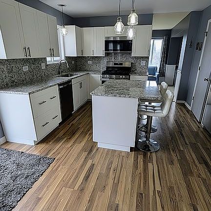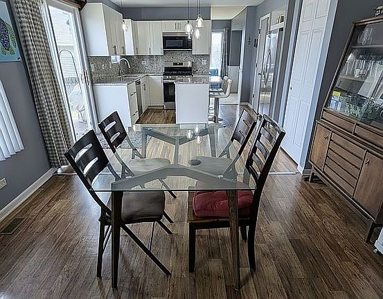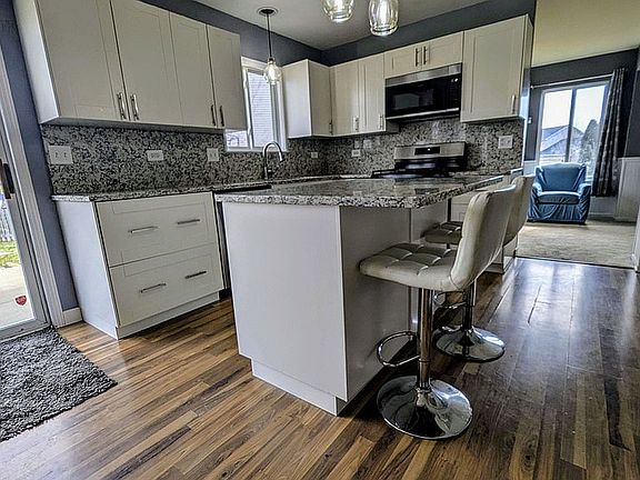This beautiful 3 bedroom, 2.5 bath home has a newly remodeled kitchen. It sports granite countertops and a full-height backsplash, new stainless steel appliances, a large kitchen island, and a pantry closet. It offers plenty of space for your family. There is a newly remodeled ½ bath just off the entrance. A large coat closet adds convenience to your entrance, and a two-car garage with proximity to the kitchen for easy unloading. Adjacent to the kitchen is a lovely dining area/great room. A large sliding glass door bathes the space in lots of natural light and leads to your oversized fenced back yard, complete with a large patio, pergola, brick BBQ pad, and trampoline (included). It also has a fully heated and air conditioned, partially finished basement, currently used as a 4th bedroom, adding approximately 700 square feet of additional usable living space. The spacious Primary Bedroom with ensuite accommodates a king-size bed, has a walk-in closet, and ceiling fan. The two additional Bedrooms have large closets and ceiling fans. The upstairs laundry is made for convenience.