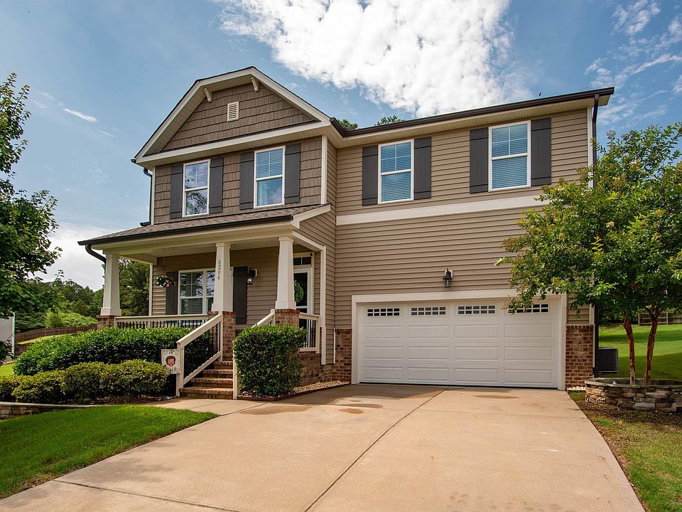Showings start Saturday! Beautiful move in ready home on large lot with flat backyard. Covered front porch welcomes you to an open floor plan with formal living and dining rooms at the front of the home (dining rm currently used as playroom). The back of the home opens up to a large family rm/kitchen/breakfast area. Granite countertops, walk in pantry, stainless appls and warm backsplash for an inviting chef's kitchen. Engineered hardwood floors throughout 1st floor. Refrigerator, washer & dryer convey! Upstairs are 4 BDRMs plus a central loft space: perfect for an office or playroom! The owner's suite is huge with a sitting area and an ensuite bath featuring dual sink vanity, walk in shower, water closet and WIC. 3 addt'l guest rooms w/ ample closet space. Newer LVP flooring throughout 2nd floor. 2 car GAR offers mounted storage racks and epoxy flooring. Large custom deck for outdoor entertaining. Great curb appeal with stacked stone flowerbeds and flagstone accents. Permanent open space on one side for extra privacy and no house directly behind. Great location with easy access to Buffaloe Rd exit at 540.