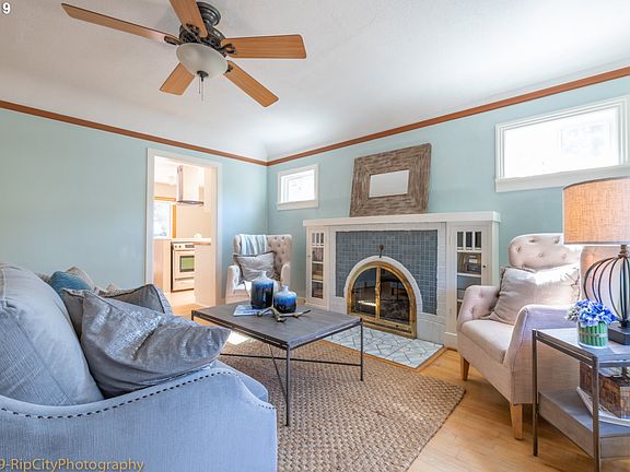 Nicely updated Rose City Bungalow with newer island kitchen, eating area in kitchen, formal dining room, hardwood floors, built-ins, gas fireplace, slider to deck, and central air. Big unfinished basement with seismic retrofitting. New carport, storage shed, and sprinkler system. Lot to north not included in sale. Pink tape denotes approximate property line. [Home Energy Score = 6. HES Report at https://rpt.greenbuildingregistry.com/hes/OR10138824]