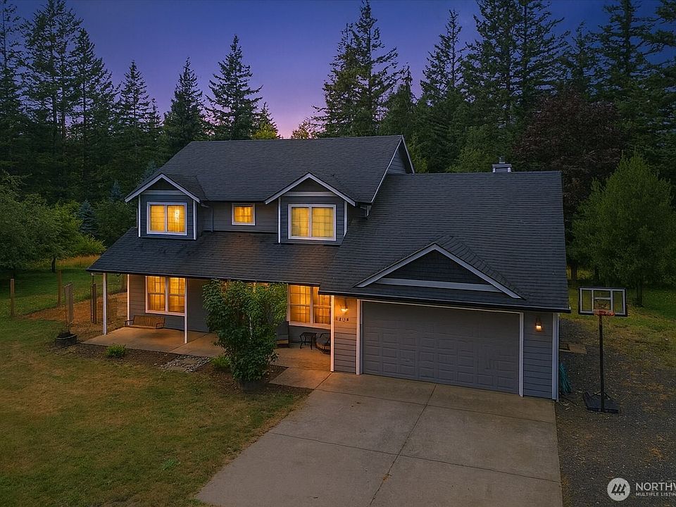 Discover country living on 5 private acres with year-round creek and seasonal pond. The 3,054 SF, 4-bed home features cherry wood floors, granite counters, double ovens, and a primary suite with spa-like bath. Flexible living spaces include family, formal, and bonus rooms. Impressive 2,000 SF shop offers 16-ft ceilings, two 14-ft doors, multiple 220 outlets, and woodstove heat—ideal for RV storage, business, or hobbies. Mature evergreens frame open grassy meadows, while fruit trees, a fenced garden, and blueberry bushes invite you to enjoy farm-to-table living plus a circle driveway gated on one end complete this serene Washougal retreat.