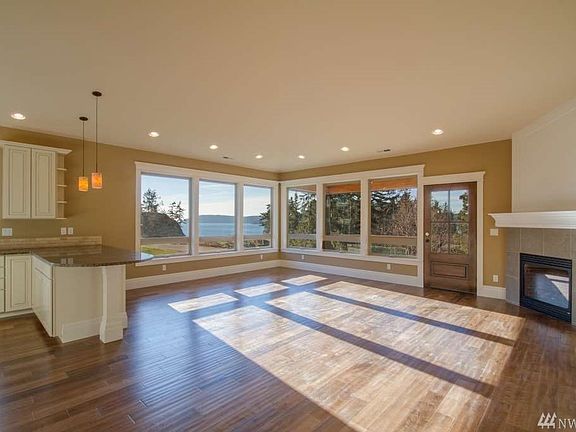 Wonderful view home, high-end finishes, amenities throughout including hardwood floor and granite. Large windows allow opportunity to be amazed at beautiful sunsets over Burrows Bay/surrounding islands. Home approximately 3050 sq.ft. Main floor living includes open living, gourmet kitchen area w/vaulted ceilings, Southwesterly views, master suite, bedroom/study, covered deck. Lower level family room, oversized bedroom, full bath, 3 car garage, heated storage/shop. Private sandy beach access.