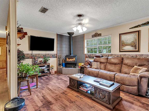 Peace and quiet but minutes from town. Newly updated kitchen with granite and gently used appliances. Family room has wood burning stove. Back patio has fireplace and great seats for watching the deer graze or sit in the swing in the front yard.
