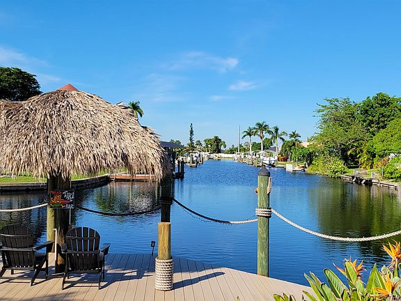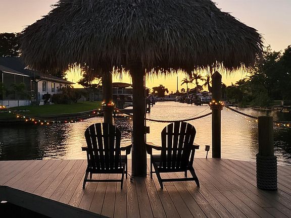REVISED PRICE! Easy access to the River and Gulf of Mexico only one bridge out. High and dry, no water intrusion into home from Hurricane Ian! This completely updated home is situated on a western exposure lot with views of intersecting canals with breathtaking sunsets. It features 3/possible 4 bedrooms and 2 bathrooms, spacious living area with an open floor plan. Master bedroom is a relaxing retreat with sitting room (or 4th bedroom?) Remodeled master bath with custom tile work. New wood plank style tile flooring throughout the entire home. The kitchen has brand new quartz countertops, new cabinets and new stainless steel appliances, still unwrapped! Gorgeous custom tile fireplace. Bring your boat! There is an expansive dock with Captain's walk that has been upgraded with trex planks with plenty of power and water stations, a 10K lb lift and newer Tiki hut! 10’ x 30’ enclosed Lani, new screen enclosure and tile floor. SEE MORE New garage door for over-sized garage, new light fixtures, upgraded electrical panel and switches, roof est. 2016, new exterior and interior paint with new baseboards. HURRY this home won’t last at this price! Easy to show Call 916-502-5412 for showing. Owner is licensed Broker. All information to be verified independently by buyer. Start living the SWFL dream life today!