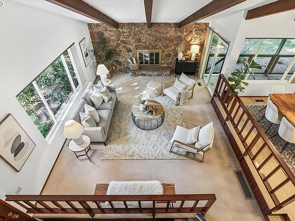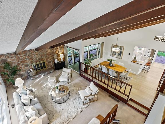 OFFER RECEIVED. OFFER DEADLINE 1:30PM 9/26. Move right into this picturesque Bridlemile home and relax in the beautiful and tranquil setting. Thoughtful architecture incorporates views of the natural world from every room bringing the outside in. Spacious and open floorplan highlighted by striking wood-beamed vaulted ceilings. Light and bright fully renovated kitchen with sliding doors lead to deck for entertaining. 3 spacious bedrooms including ensuite, 2.5 fully renovated bathrooms. Large family room with 2nd fireplace, bar sink and period paneling for a cozy feel is the perfect retreat from a busy day. Car charger in 2 car garage. Generous storage including large closets, built in cabinets and accessible attic crawl space. Don't miss the opportunity to see this special home!