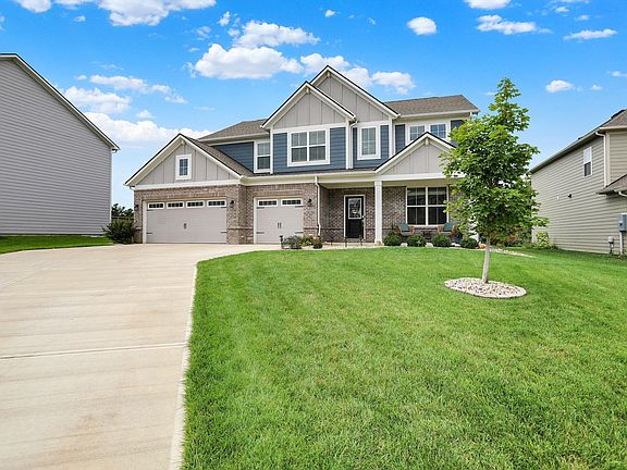 Welcome to 4204 Viewforth Lane! This charming craftsman style home exterior offers hardie board and brick siding, large yard with a private backyard equiped with a wrought iron fence, gazebo, H2X Fitness Swim Spa and irrigation system. The main level of the home offers an office with glass french doors, large kitchen with stainless steel appliances, built-in oven, gas stove, and a large island with sink. The dining area connects to kitchen and large greatroom with fireplace and large windows. The main level also offers a bedroom with full bath ensuite and a half bath. The upper level features a large primary bedroom with ensuite and large shower with walk-in closet, three other nice size bedrooms, large loft area perfect for a second family room and a laundry room with cabinetry. Upgrages include a water softener-2025, LVP flooring 2024, gazebo, swim spa, built-in wood shelving in garage. The neighborhood offers a pool, a walking path to Kephart park that includes pickleball, splash pads and kids play area with padded flooring and is also within walking distance to downtown Bargersville, Taxman Brewery and P&L Italian eatery.