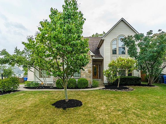 Stunning 1.5 story home on a parklike setting lot. This home boasts a large first floor primary with walk in closet and gorgeous tiled shower. The family room has a two sided fireplace between the kitchen and family room. The two story family room gives the home a large spacious feeling and walks out onto the deck. There is a stubbed in gas line on the deck for a grill. A large storage building in backyard. Along with an office/living room, there are doors to close it off to the dining room. Upstairs there are 3 large bedrooms and a bonus room. Very close to the clubhouse. This one won't last long!