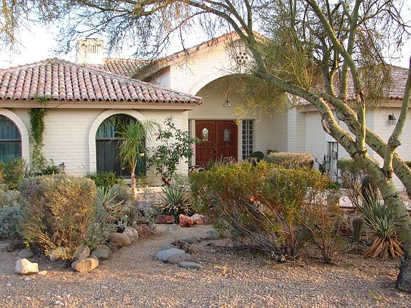 Bordering the Tonto Forest, this charming home is located in the prestigious Spur Cross area of Cave Creek. Less than a mile from the Conservation area featuring over 2000 acres of desert open space with hiking & equestrian trails, picnic tables & wildlife. Brand new tile roof and freshly painted exterior have transformed this hacienda into a blend of contemporary, yet preserving the original charming Spanish architecture (arched passages). Formerly used as a B&B, the current Sellers made this their family residence. Two master bedroom suites, one of which is perfect for a mother-in-law suite or guest casita (has its own separate entrance and patio). Split from the master are two additional guest bedrooms. Sprawling living room with a grand vaulted ceiling and Click Mo