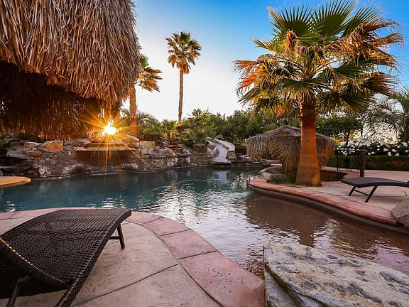 AMAZING ESTATE QUALITY HOME IN DESERT ROSE. Over 7000sf of Pure Luxury--Both inside and out. And Gated all around Property for Great Security. Great Open Layout with Stunning Detail from Front Entry Door to Finish Details including Venetian Plaster, Rich Travertine and Wood Floors, Sweeping Wrought Iron Staircase and Much More. The Huge Beautifully appointed Living and Dining Rooms are great for Entertaining. The Kitchen is a Chef's Dream. Gorgeous with Dramatic Ceiling Detail and 2 Large Islands yet very Functional. High End Custom in Every Detail including a Wine Cellar. Upstairs is a Library and Game Room perfect for the Family. And there is a Media Room seats 12. The Master Suite will Rival those found in any Top Luxury Resort. Secondary Bedrooms also have Ensuite Baths. Outside was designed for Entertaining. Freeform Pool has Swim Up Bar and a Large Spa. There is a Cedar Pavilion with a Fireplace. Also a Gourmet Barbecue, a Bath House with Full Bar, a Putting Green, Pathways, Waterfalls and more. Lush Landscaping Front and Rear. The Four Car Garage has great Storage and Custom Cabinetry. Don't miss this Unique and Special Home!