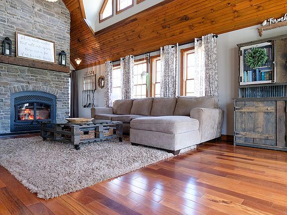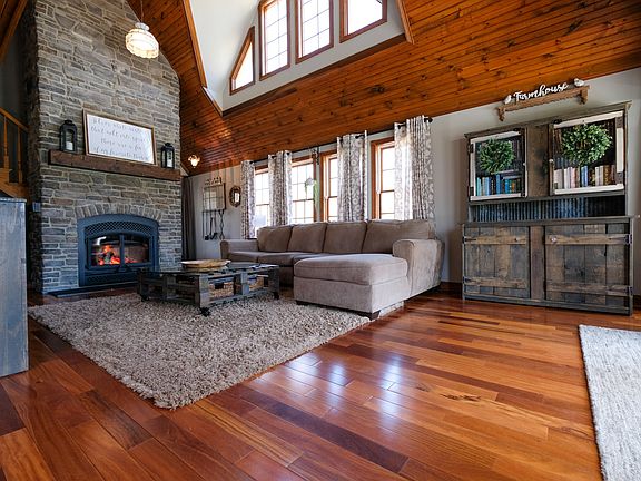 Don't miss this rare find! Hard to find almost 40 ac. of a hunters dream land with a renovated home, in-ground heated pool, large barn, chicken coup, additional open sided barn, multiple raised gardens, hay fields, forestry, several fruit trees, mulberry bush, blueberry bush and new solar panels to make this property energy efficient!! The home features 3 br, 3 full ba, a 2-story great room, kitchen and dining with a view to the outdoor living. The primary suite is on the upper level all to itself along with an upper living or office space and balcony with views of the animals or main level. The lower level has a full ba, laundry, family room, and storage or exercise space. All this and fenced for animals and an electric gate for privacy