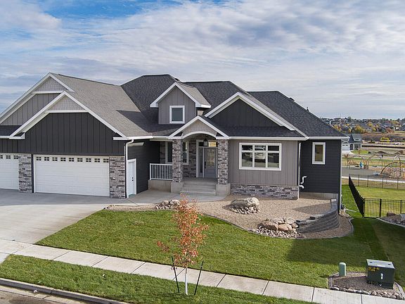 Nestled on a coveted CORNER LOT in the prestigious Elk Ridge Subdivision, this distinguished custom home reflects the superior craftsmanship of D & B Homes in delivering a distinctive masterpiece that is the essence of MODERN LUXURY LIVING. Every detail is expertly crafted, beginning with the exterior's inviting curb appeal. The covered front porch adorned with an archway and custom shake and brickwork sets the stage for the UNIQUE ARTISTRY revealed throughout. As you move inside, your every expectation is met as each feature reflects a continuity of refined quality. The detail and unique high-end finishes such as BOARD AND BATTEN FEATURE WALLS, box ceilings, beautiful light fixtures, soothing paint colors, CUSTOM-BUILT quarter sawn white and red oak cabinets, walnut cabinets and white painted cabinets, HEATED TILE in the upper bathrooms, CUSTOM REFRESHMENT BAR with beverage/wine fridge, quartz counters and so much more. As you enter you will appreciate the free-flowing natural light dancing through LARGE WINDOWS, enhancing a bright and spacious foyer accented with board and batten finishes. The thoughtfully planned main floor effortlessly accommodates gatherings with its OPEN FLOOR DESIGN. Crowned by an incredible BOX CEILING and boasting a gorgeous custom fireplace surrounded by custom shelving and cabinets, the living room is just the place for gatherings and celebrations. You will enjoy cooking and entertaining in the open kitchen featuring gorgeous custom cabinetry with pull-outs, quartz counters, an island for great workspace, storage and extra seating. There is more to love with the GAS COOKTOP AND CUSTOM HOOD, built-in double oven, and an incredible walk-in pantry with CUSTOM BARN DOOR plus cabinetry and shelving providing a solution for storage in a space that is as functional as it is beautiful. The kitchen flows seamlessly into the dining area, complete with a beautiful box ceiling, filled with natural light flowing through a large window and patio doors that offer easy access to a massive 20 x 16 MAINTENANCE-FREE COVERED DECK with a gas line for your grill. This is the place where you will enjoy sipping that morning coffee before heading out the door, relaxing at the end of the day with your favorite beverage, or unleashing your inner grill master. A CUSTOM REFRESHMENT BAR with beverage/wine fridge leads from the dining area to a large GUEST ENSUITE boasting a beautiful custom barn door covering a huge closet, a gorgeous private bath with storage, and a separate entry from the garage. A luxurious PRIMARY ENSUITE offers the perfect oasis with a stunning SOAKING TUB, CUSTOM-TILED SHOWER, dual sink vanity with gorgeous custom cabinets and linen storage, and an incredible oversized walk-in closet with BUILT-IN DRESSERS and shelving. The main floor includes a 3rd bedroom (or office). a well-appointed full guest bath with linen storage, a MAIN FLOOR LAUNDRY with sink and storage closet just off the mud room with a custom drop-zone counter and a bench with coat hooks. The expansive lower level is the ideal spot for hosting those game day gatherings or movie-night premieres in a HUGE FAMILY ROOM with a beautiful fireplace and an incredible CUSTOM WALNUT WET BAR AREA with an island. You can move out onto a huge, COVERED PATIO offering more room for overflow and includes an area stubbed in for your TV plus an outlet for your hot tub. The lower level also boasts 3 large bedrooms with stunning batten and board accent walls, a full guest bath, a ¾ guest bath, a versatile space that can be used for an exercise room, craft room, or office, a 2ND LAUNDRY ROOM with sink and custom cabinets, plus more storage. The oversized 4-car HEATED GARAGE includes hot/cold water and floor drain. Additional unique high-end features include electric car plugs, 2 electrical panels, Anderson 400 windows, LP Smartside, and more. Come discover this truly turnkey home. Contact a realtor today for a private showing.