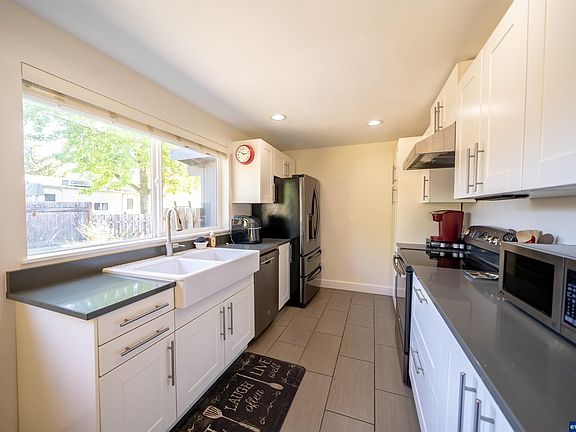 This exquisite 3-bedroom, 1-bathroom home offers 1,152 sqft of contemporary living space on a large .19 acre lot. The oversized, beautifully landscaped backyard features a covered patio, raised garden beds, and underground sprinklers, with room for an ADU. Inside, enjoy original hardwood floors, spacious living area, a kitchen with quartz countertops & S/S Appliances. The oversized bathroom boasts double sinks. Fully fenced for privacy and security.
