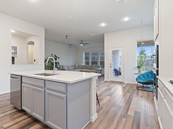 Ready to move-in. Introducing a spacious modern home in a master-planned community. This open-concept residence features laminate floors throughout, no carpet. The primary bedroom boasts abundant natural light, an en-suite bath, and an extended walk-in closet conveniently connected to the laundry room. Enjoy the convenience of living within walking distance to an elementary school, and enjoying resort-style amenities near Lake Lewisville peninsula; more than 70 acres of hike and trails, a fishing pond and kayaks. **Cut your electricity costs with this home's included solar panels** Lease terms: 12 months $2,600, 18 months $2,550 and 24 months $2,500.